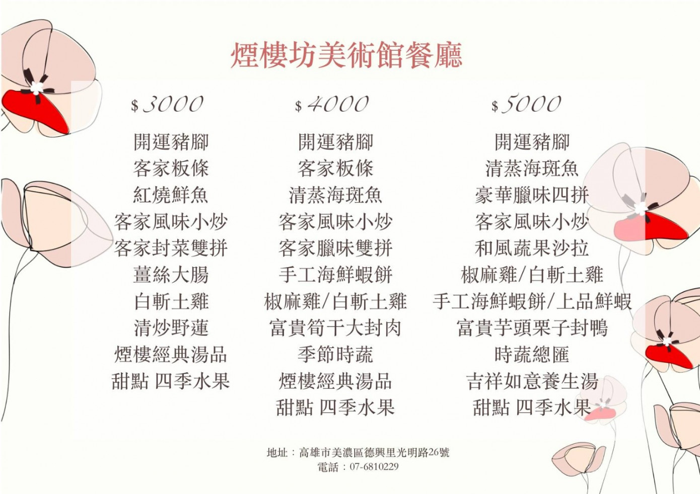 一大片綠地,滿室的名家油畫,耳中聽到bossa nova爵士音樂,親朋好友大口輕鬆自在品嘗在地客家美食,就是這獨一無二的特殊氛圍,造就煙樓坊今日的小小滿足,余光中,陳菊,楊秋興,陳鴻…….皆是煙樓坊的座上賓。