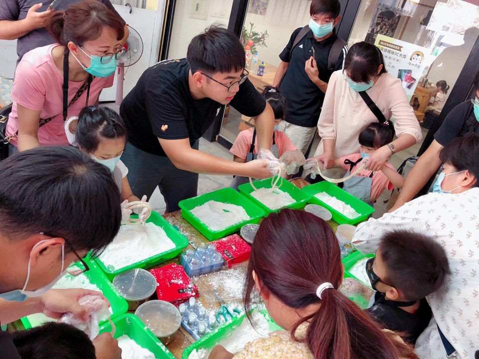 體驗如何將一塊硬邦邦的麥芽糖,拉成萬條柔軟細絲的過程,完成的作品還能帶回家分享,不僅好吃好玩,更富文化傳承與教育意義,很適合家庭 親子活動喲。體驗過程先洗洗手,領取一份龍鬚糖材料,由三十年製糖經驗老師傅從旁協助教學,將麥芽糖搓圓壓平,剪刀開洞,繞8不斷反覆拉扯至上萬條細絲,製作時間大約20-30分鐘。